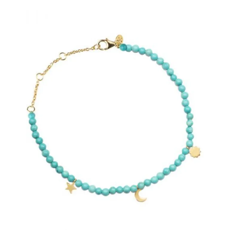 Armbåndet er lavet i forgyldt sølv med turkis.