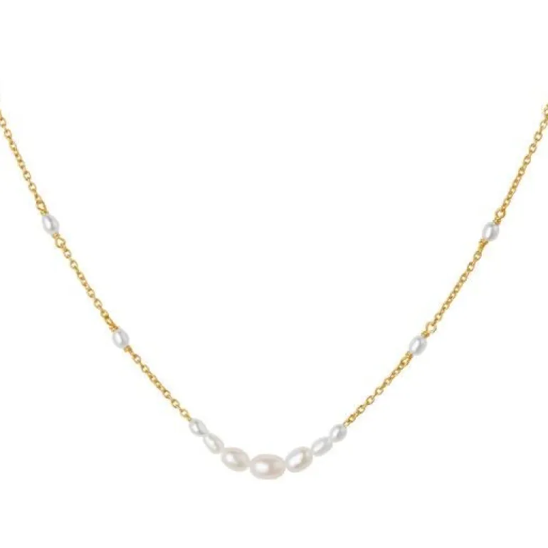 Den smarte halskæde er udført i forgyldt sølv med perle.