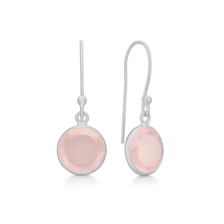 De stilfulde øreringe er lavet i sterling sølv med rosa calcedon.