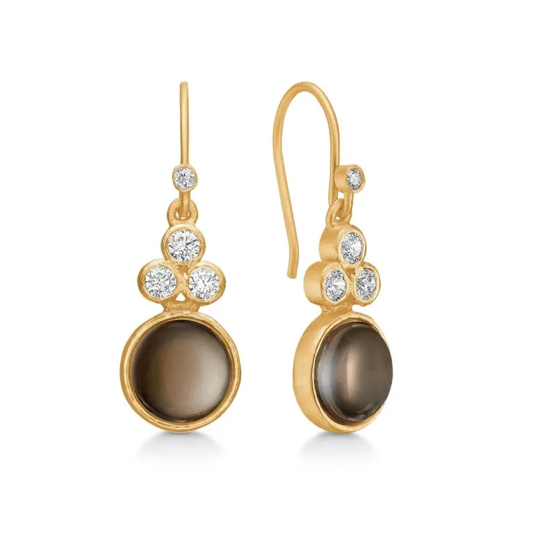 Disse smarte øreringe er fremstillet i forgyldt sølv med røgkvarts.