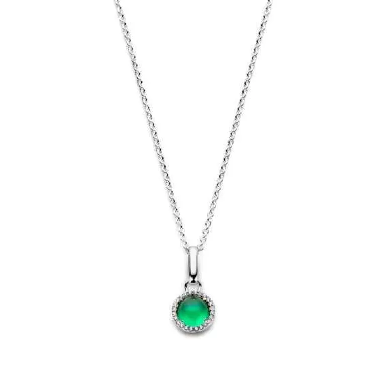 Det smarte vedhæng er lavet i sterling sølv med zirkonia-sten og grøn agat.