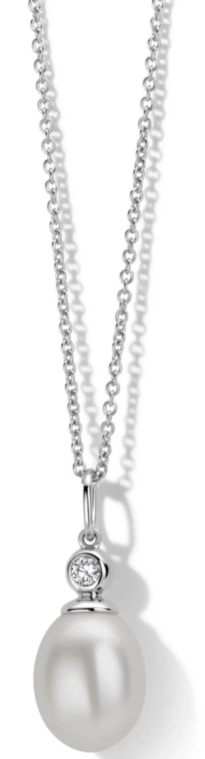 Denne fine halskæde er lavet i sterling sølv med zirkonia-sten og ferskvandsperle.
