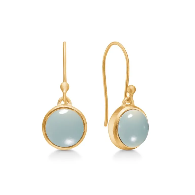 De populære øreringe er fremstillet i forgyldt sølv med aqua calcedon.