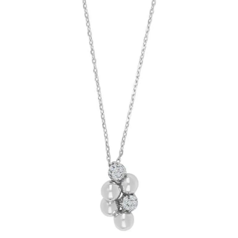 Halskæden er lavet i rhodineret sølv med zirkonia-sten.