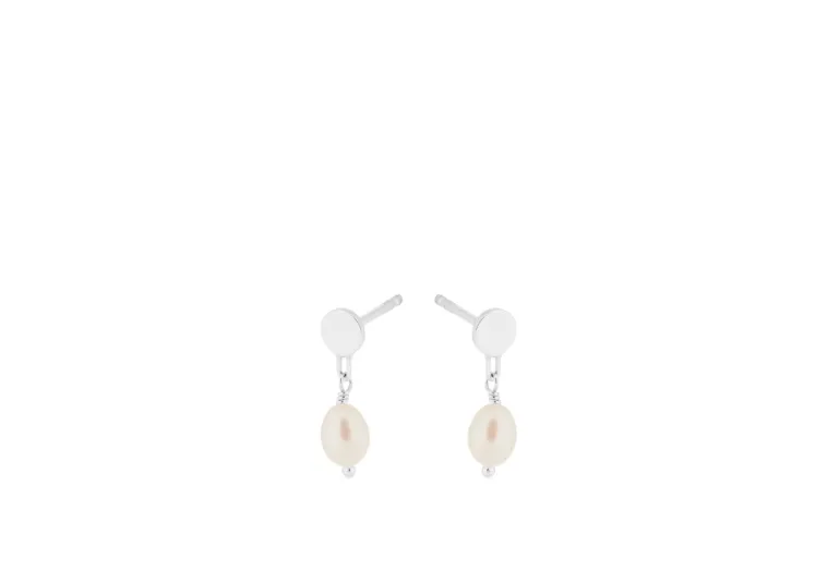 Disse moderne øreringe er lavet i sterling sølv med ferskvandsperler.