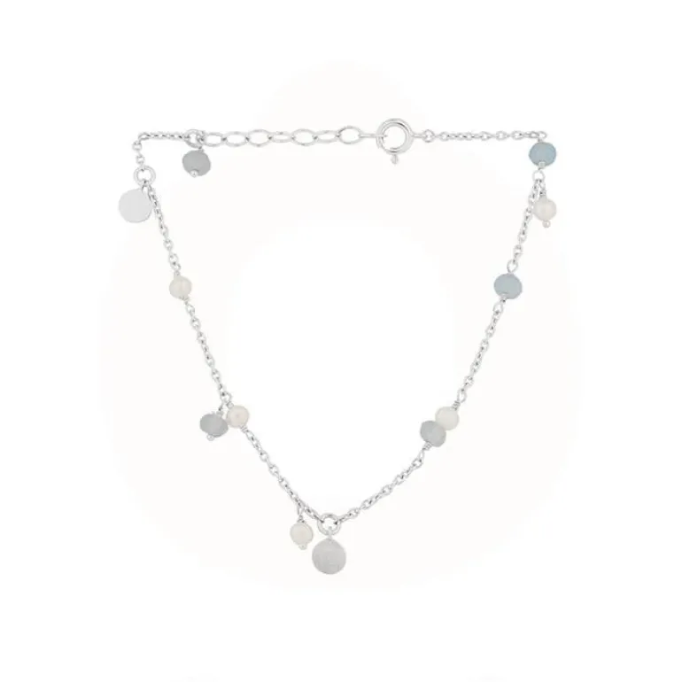 Armbåndet er udført i sterling sølv med blå agat og ferskvandsperle.