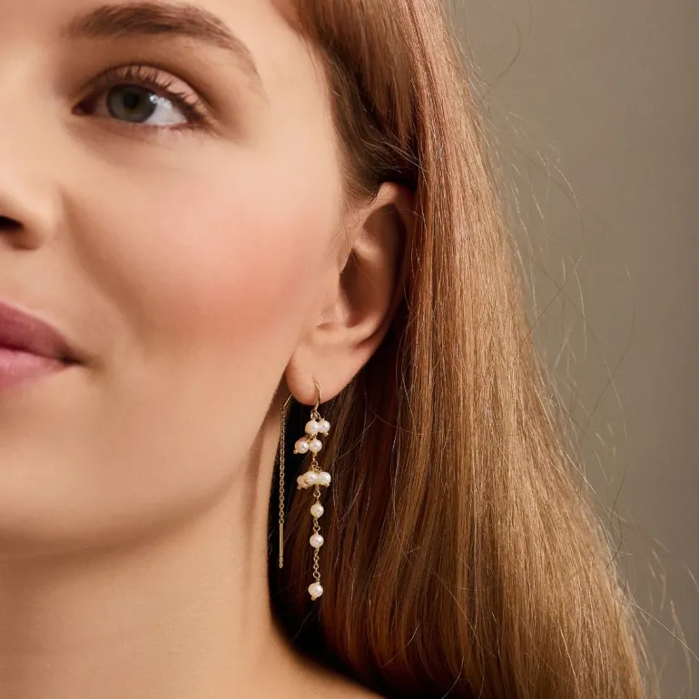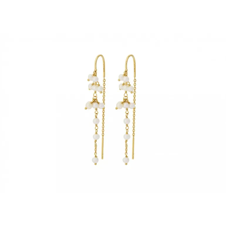Disse stilfulde øreringe er lavet i forgyldt sølv med ferskvandsperler.