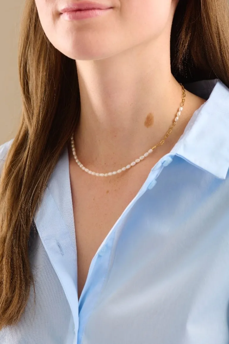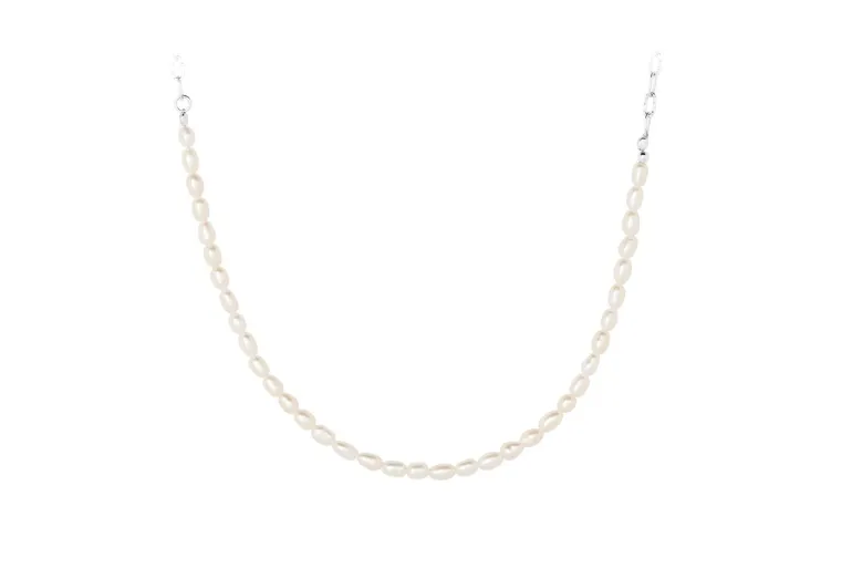 Halskæden er lavet i sterling sølv med ferskvandsperler.