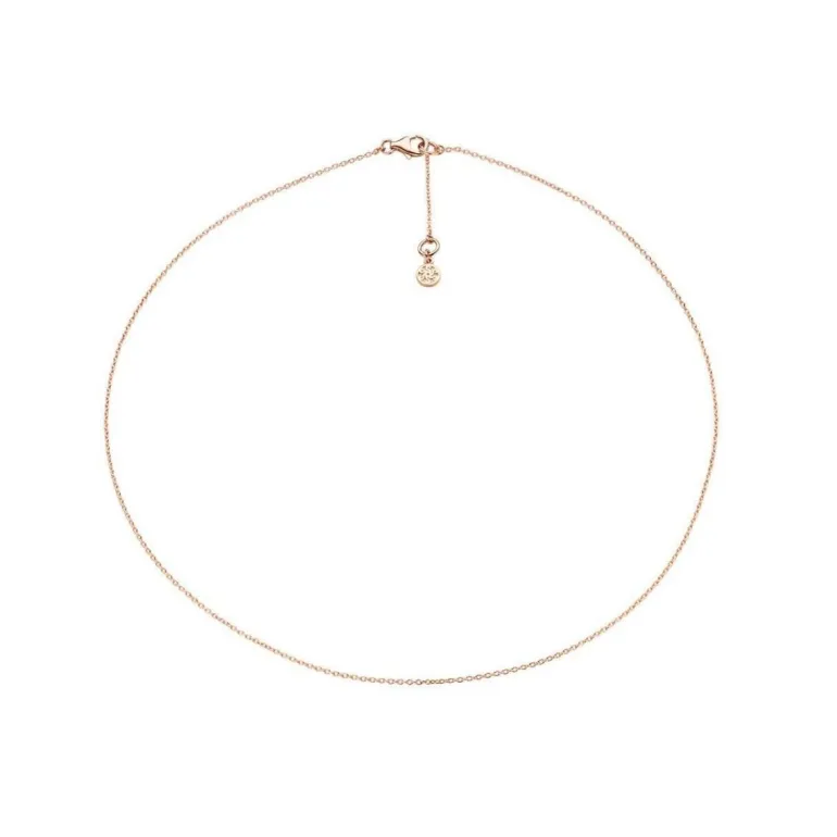 Halskæden er fremstillet i rosaforgyldt sølv.
