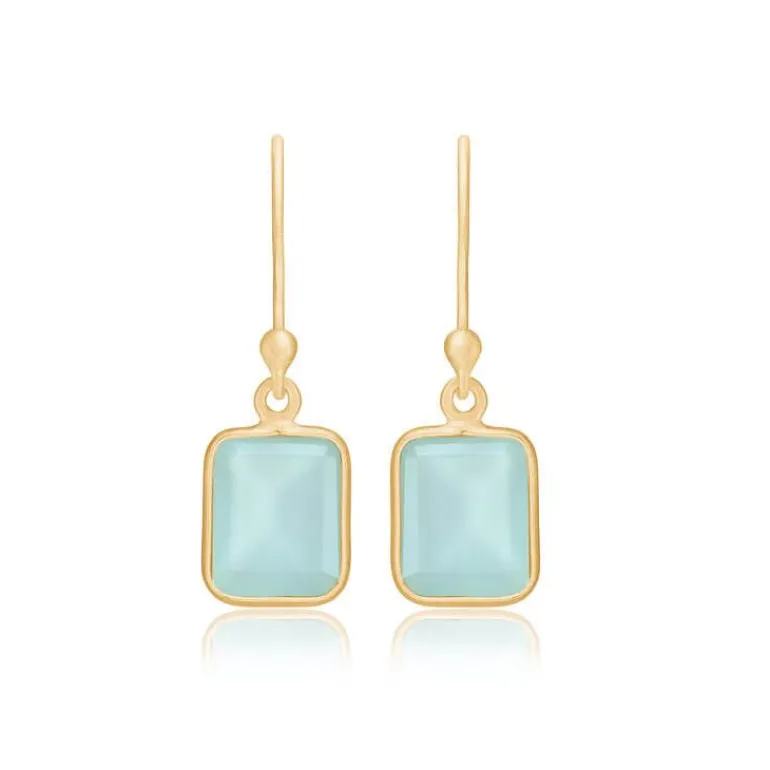 Disse smarte øreringe er udført i forgyldt sølv med aqua calcedon.